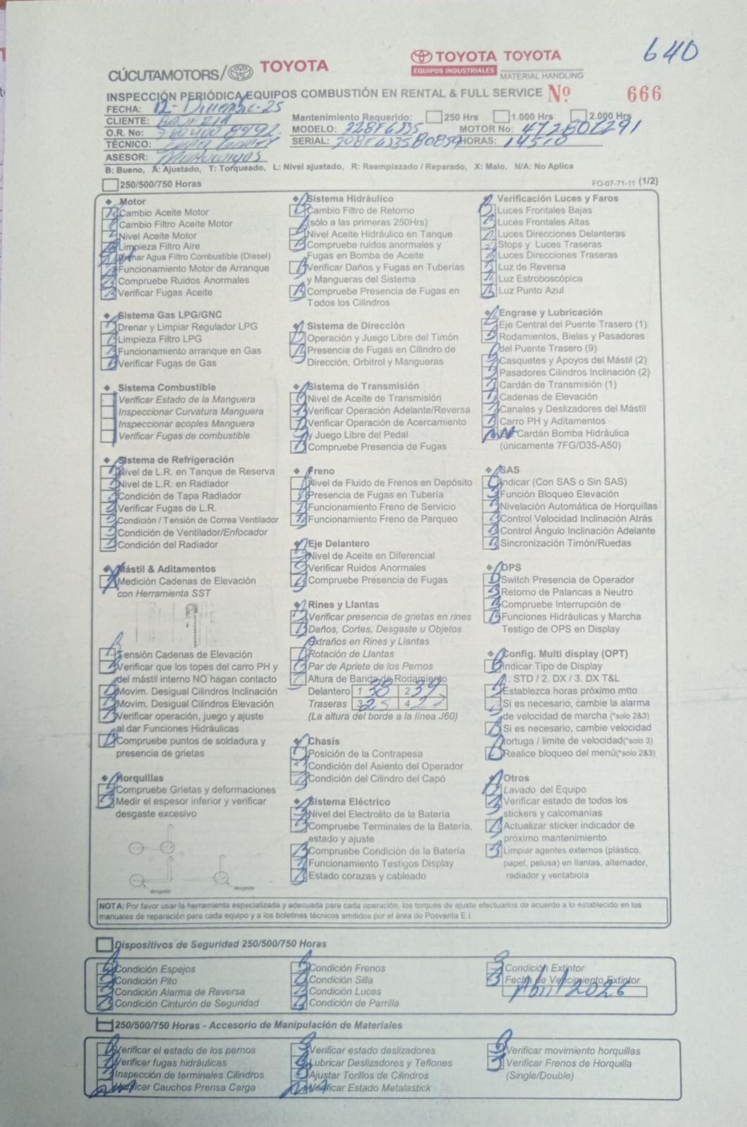 | Código | Horómetro | Prox. Mant. | Rutina | Horas Restantes | Acción |