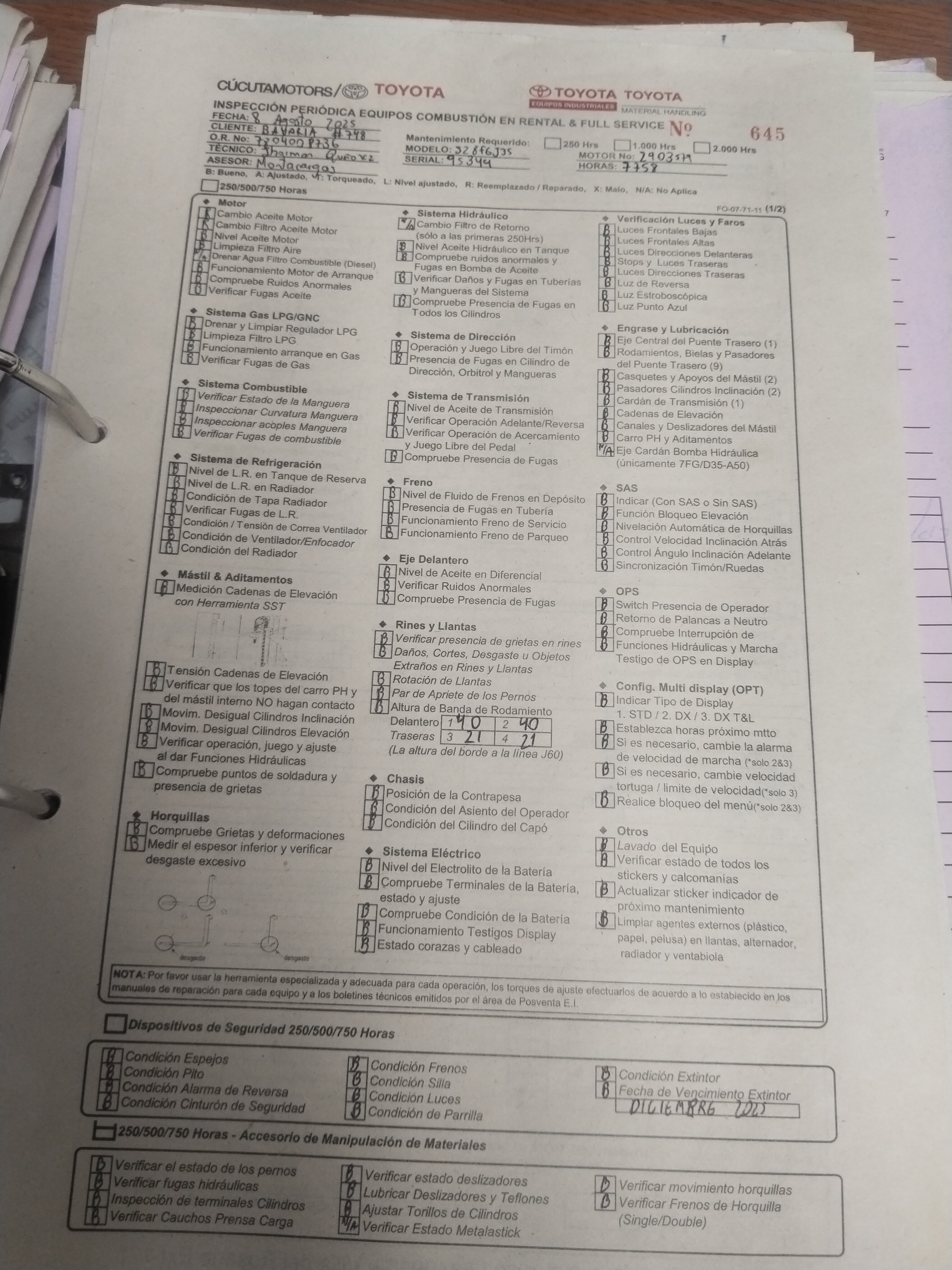 | Código | Horómetro | Prox. Mant. | Rutina | Horas Restantes | Acción |