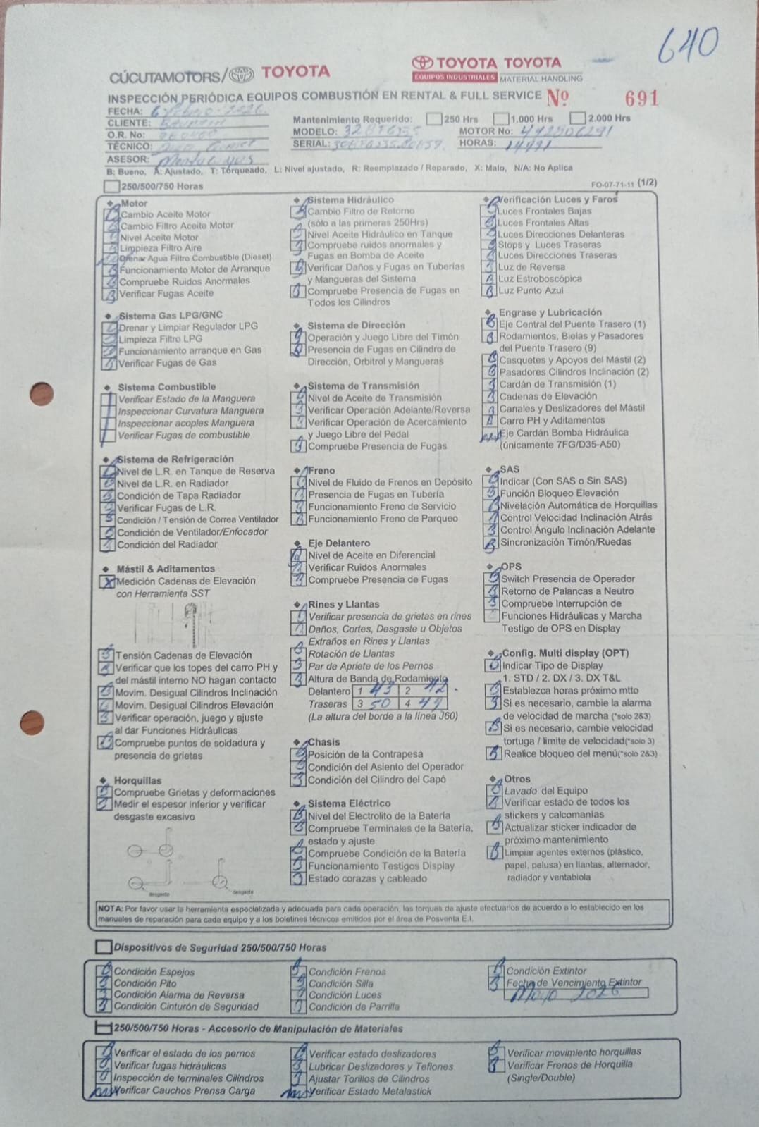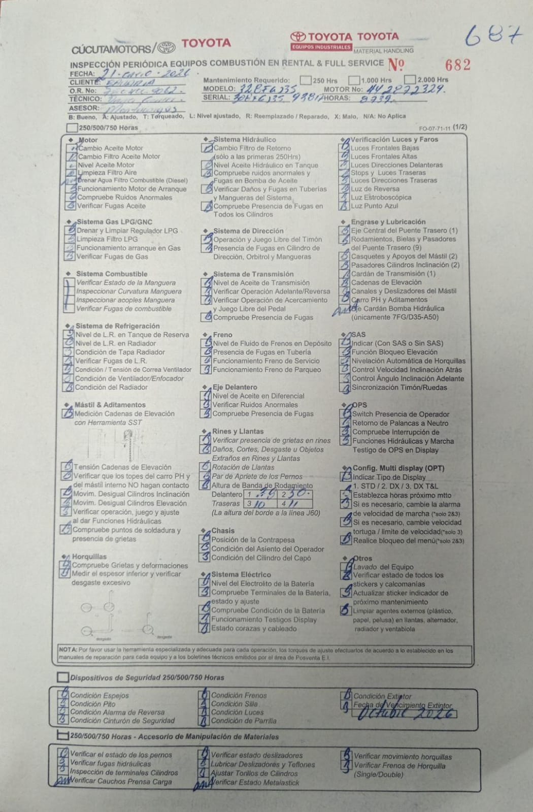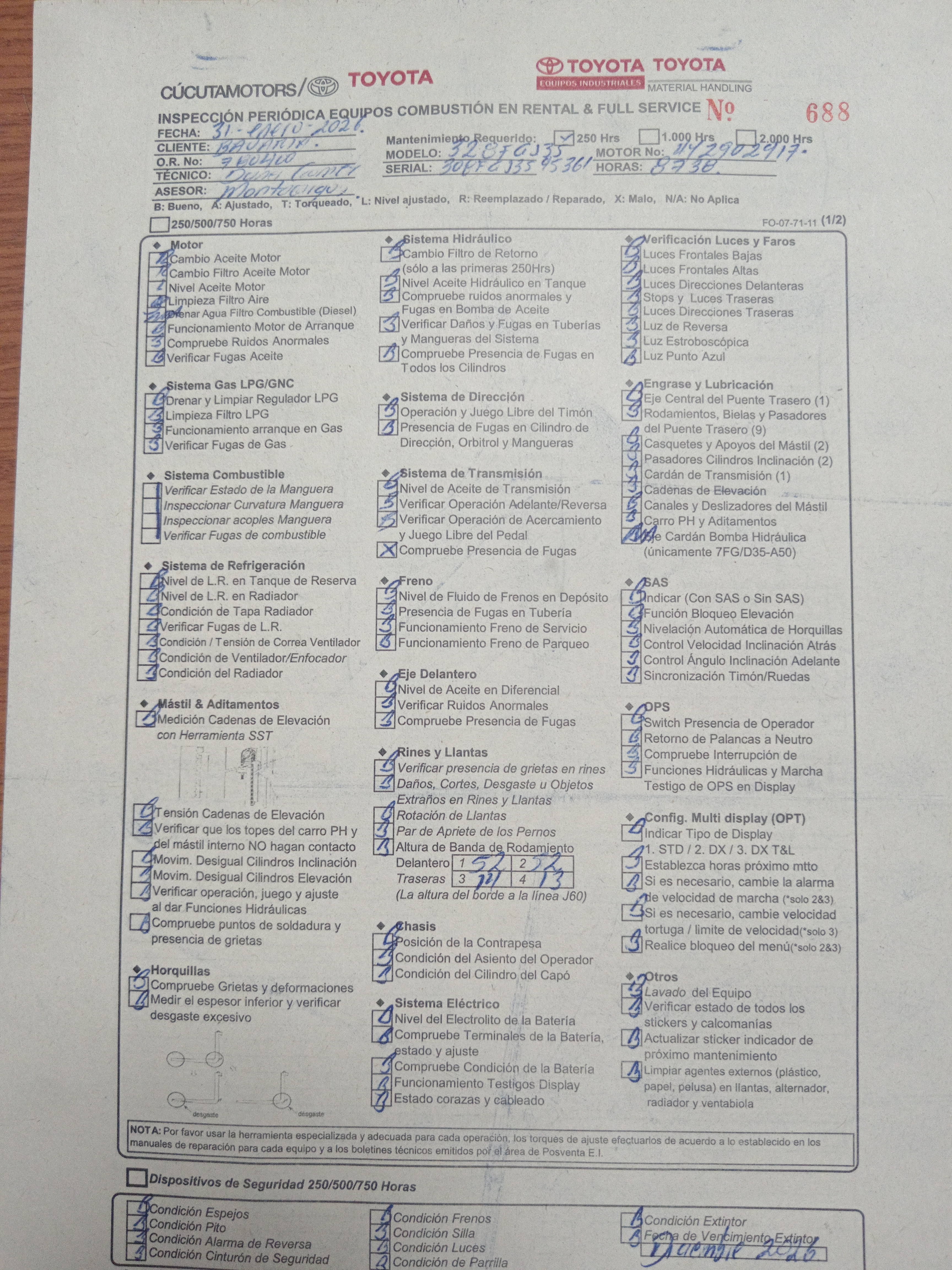 | Código | Horómetro | Prox. Mant. | Rutina | Horas Restantes | Acción |