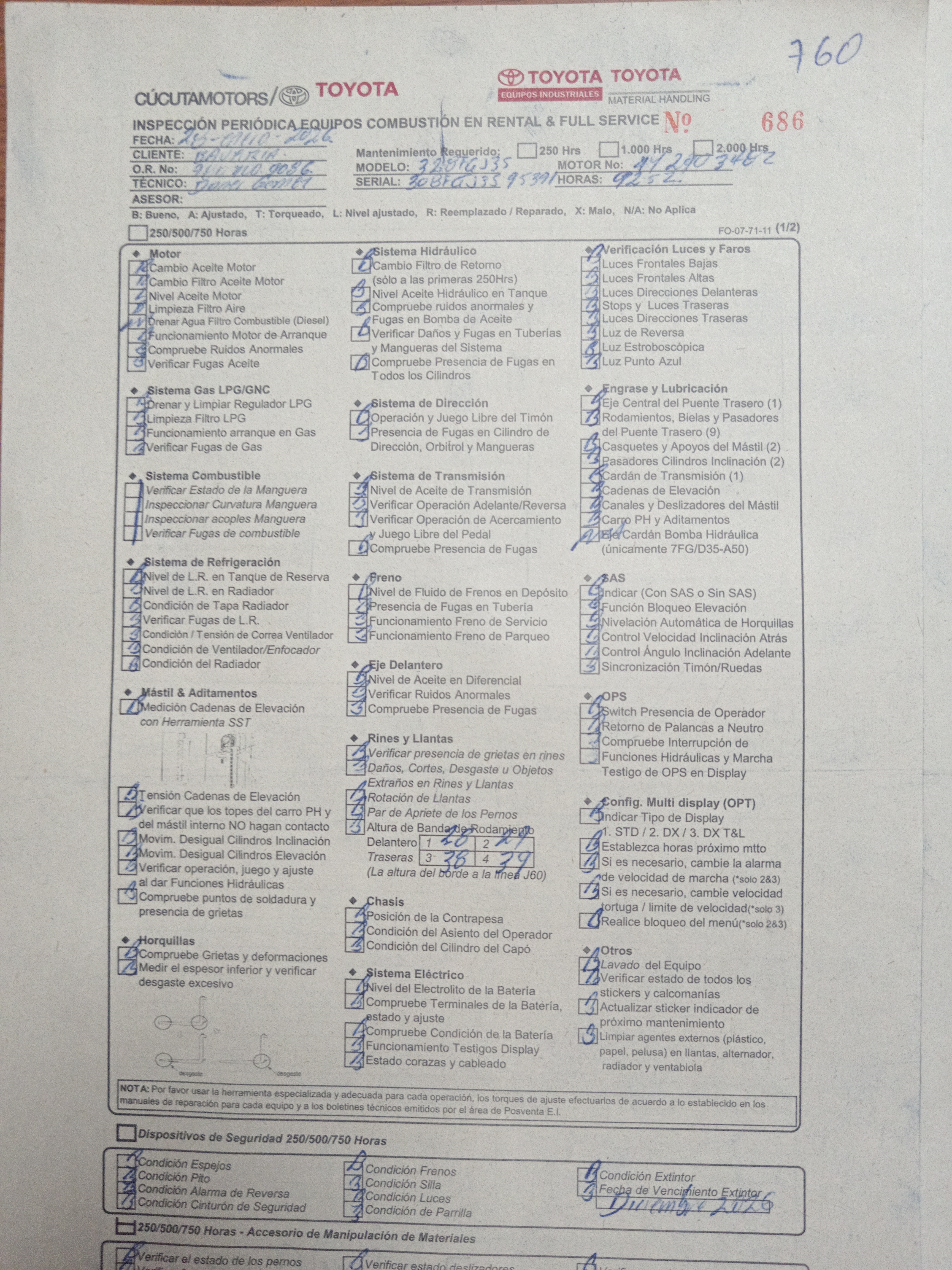| 760 | 9,690.00 | 9,750 hrs | 250H | 60.0 hrs |